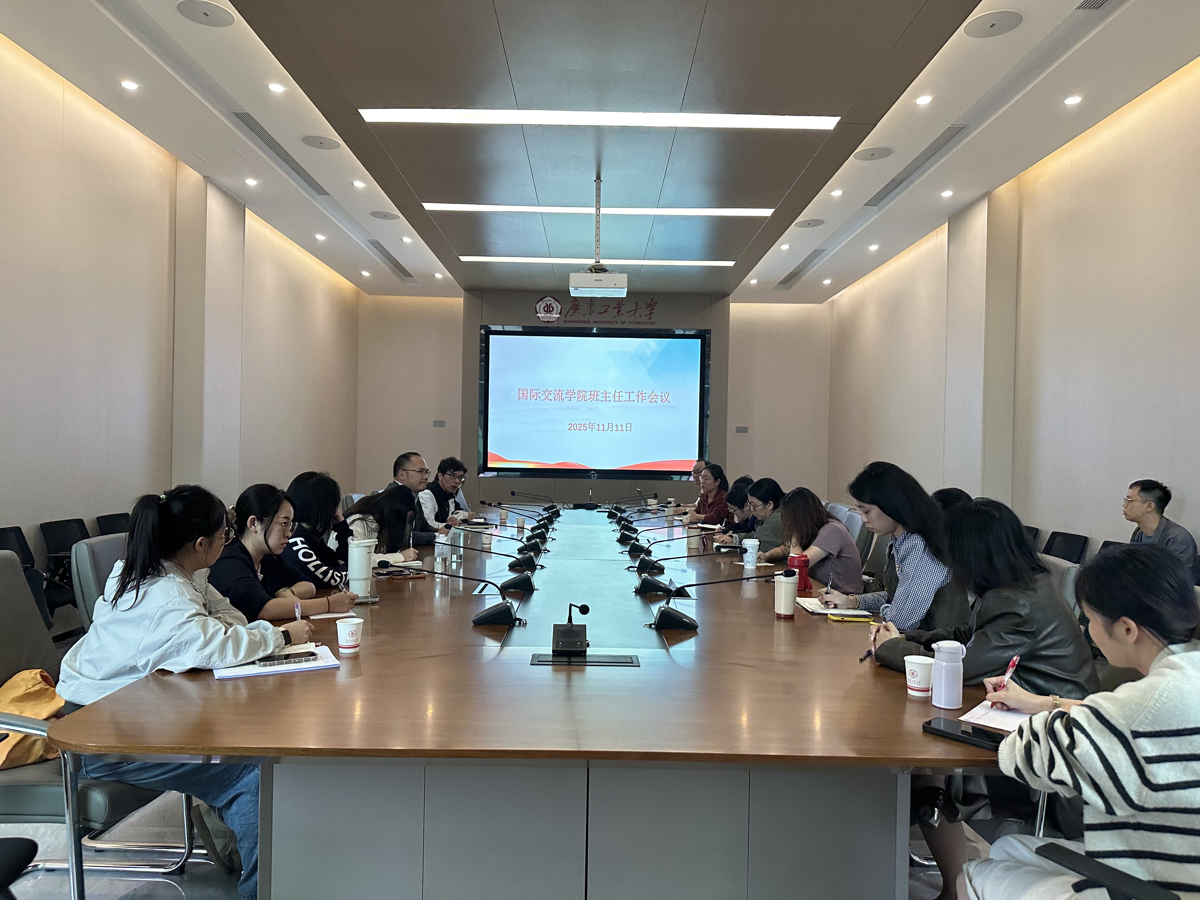 11月11日下午,学院召开秋季学期第二次国际学生班班主任工作例会,副院长彭国存主持会议,各科室负责人及全体班主任参加。会议通报了当前国际学生办学规模、校内住宿管理以及日常教育管理等情况。会议围绕国际学生校内住宿管理、教学环境提升、课堂考勤等进行讨论和交流。会议强调,要坚守安全底线,继续多措并举强化来华留学须知的宣传教育,为“留学广工”品牌建设和学校高水平创新型大学建设贡献力量。