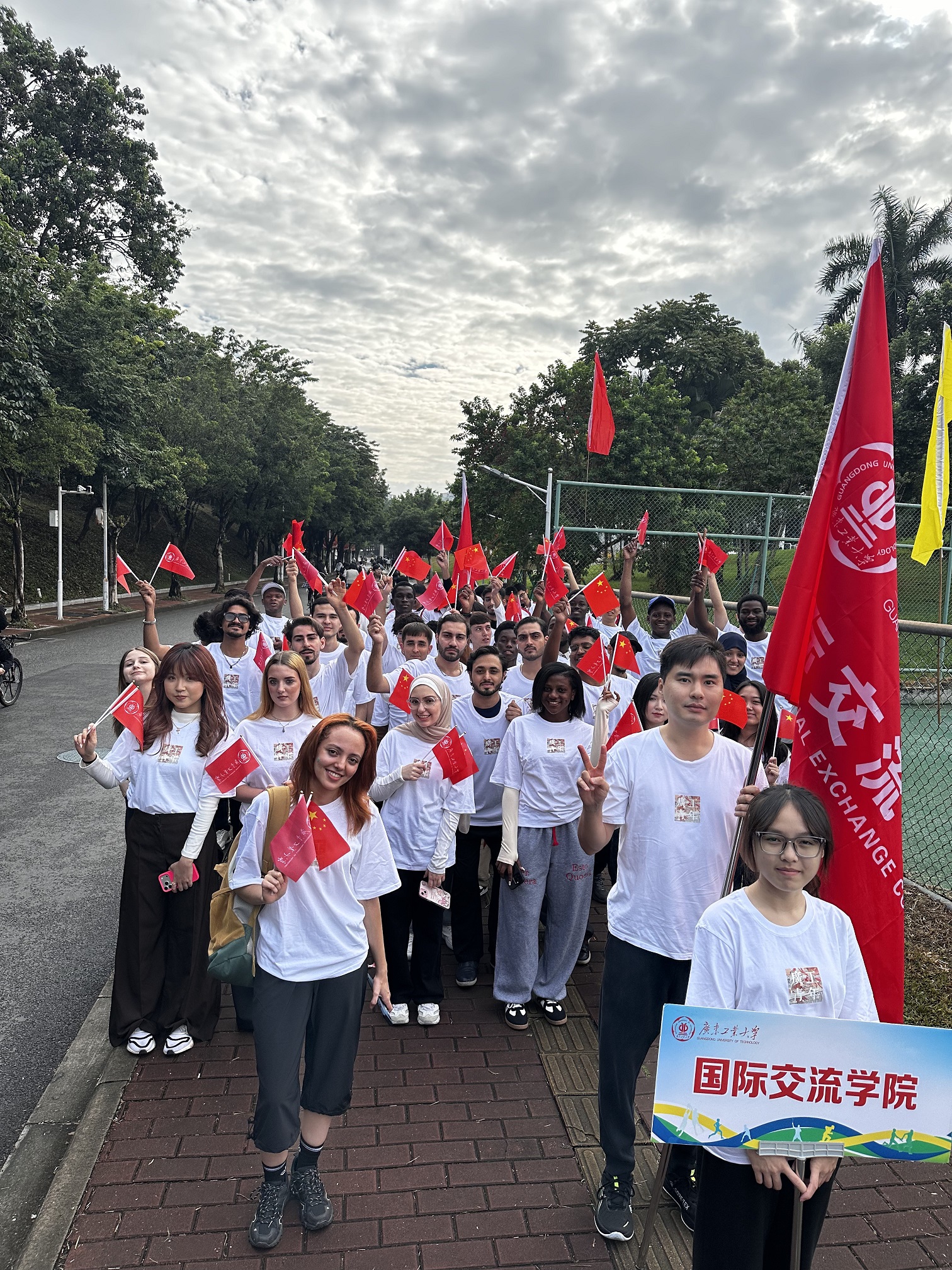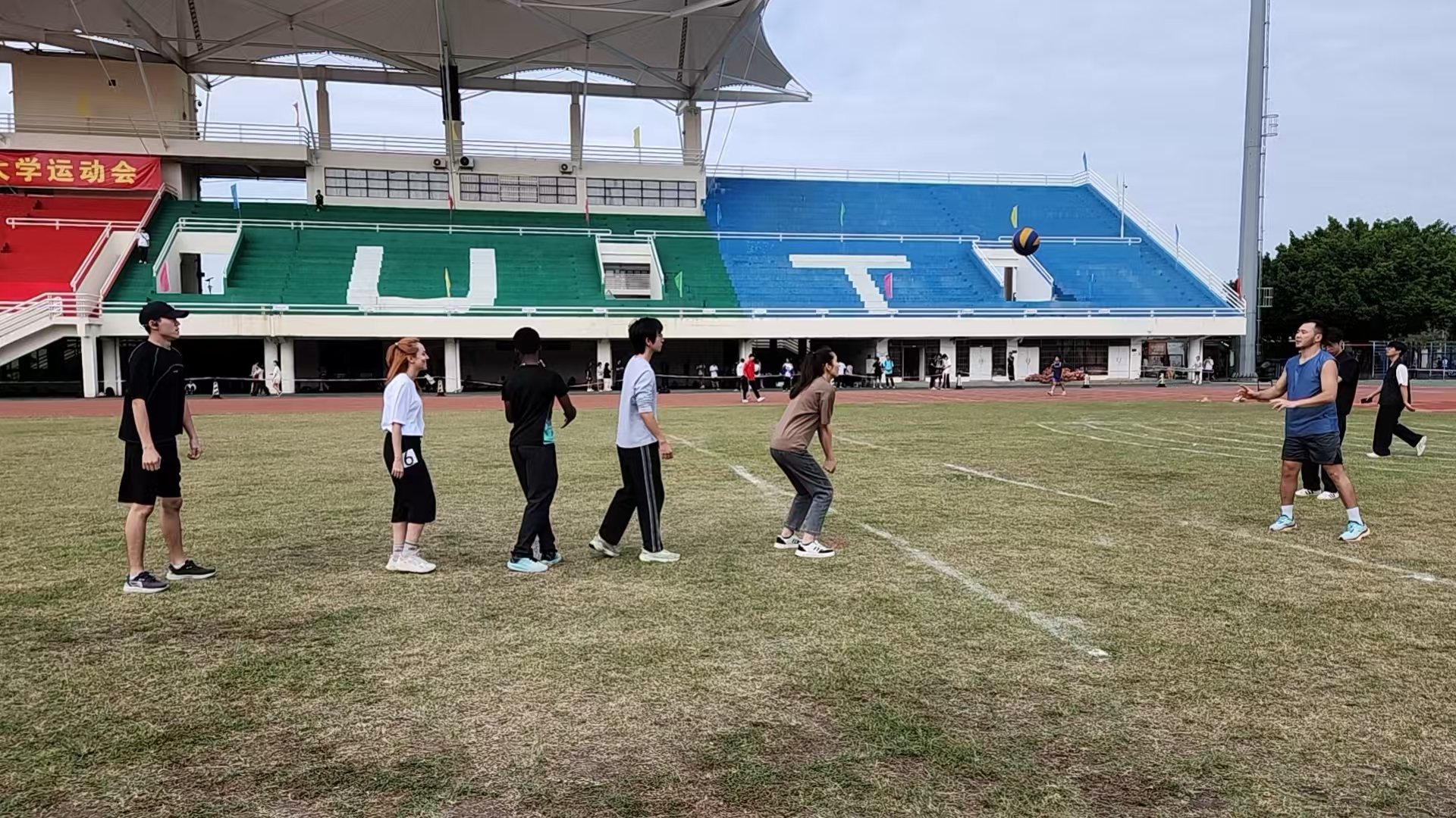 11月14-15日,2025年广东工业大学运动会在大学城校区中心田径场举行。国际交流学院来自近20个国家的80多名国际学生参加了运动会开幕式和4×100米接力、100米跑、铅球、排球垫、传球接力等项目角逐。