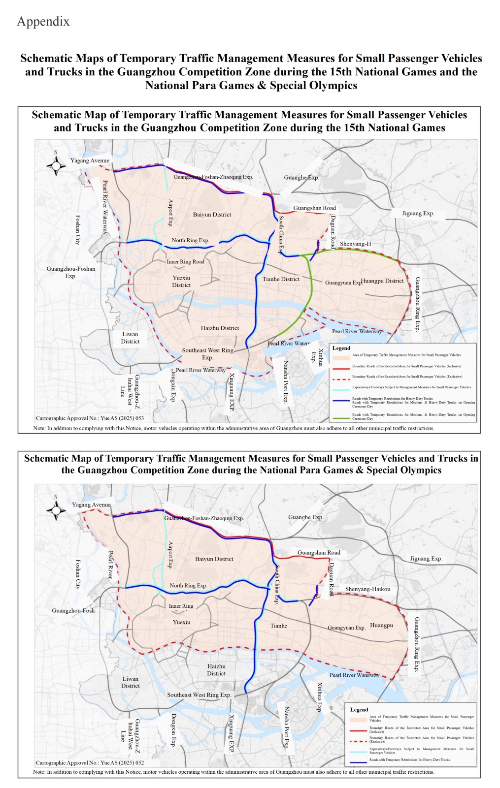 Public Notice of the Guangzhou Municipal People’s Government on the Implementation of Temporary Motor Vehicle Traffic Management Measures in the Guangzhou Competition Zone during the 15th National Games and the National Para Games & Special Olympics
